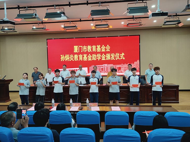 桂子飄香,愛(ài)心筑夢(mèng)。9月2日下午,2025年度孫炳炎教育基金在集美區樂(lè )安中學(xué)隆重舉行助學(xué)金頒發(fā)儀式。廈門(mén)市教育基金會(huì )法人潘世建、副理事長(cháng)兼秘書(shū)長(cháng)郭慶俊和相關(guān)領(lǐng)導,孫炳炎教育基金管理領(lǐng)導小組組長(cháng)、廈門(mén)建安慈善基金會(huì )名譽(yù)理事長(cháng)孫吉龍,集美區誠信促進(jìn)會(huì )常務(wù)副會(huì )長(cháng)孫加慶、樂(lè )安中學(xué)書(shū)記陳開(kāi)陽(yáng)、校長(cháng)莊慶華等領(lǐng)導和受助學(xué)生出席了儀式。